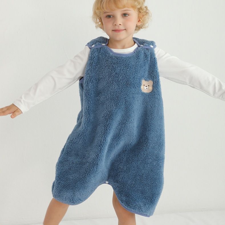 着る毛布のようなもこもこの厚手素材を使用した袖なしスリーパーです。