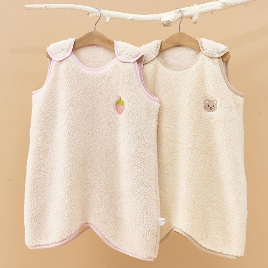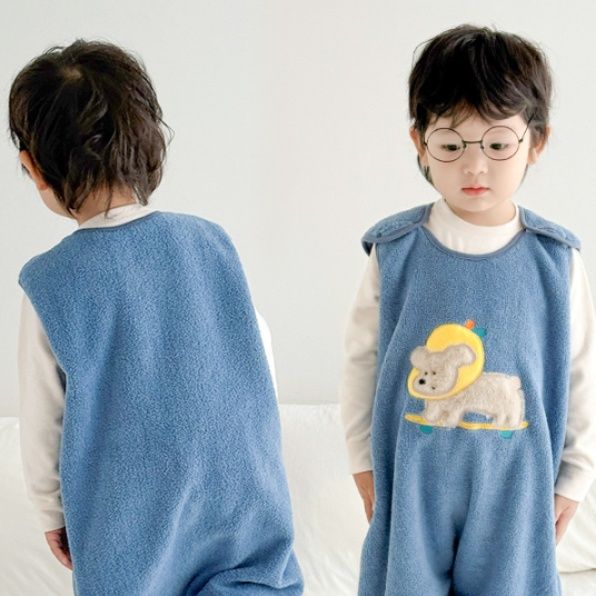 ボア素材の温かさが睡眠中のお子様をしっかり保温し、袖がないため腕の動きを妨げません。