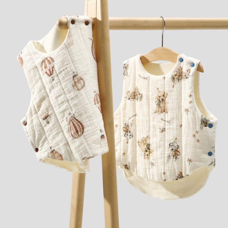 袖なしのベスト型デザインで動きやすさと防寒性を両立した110cmのスリーパーです。