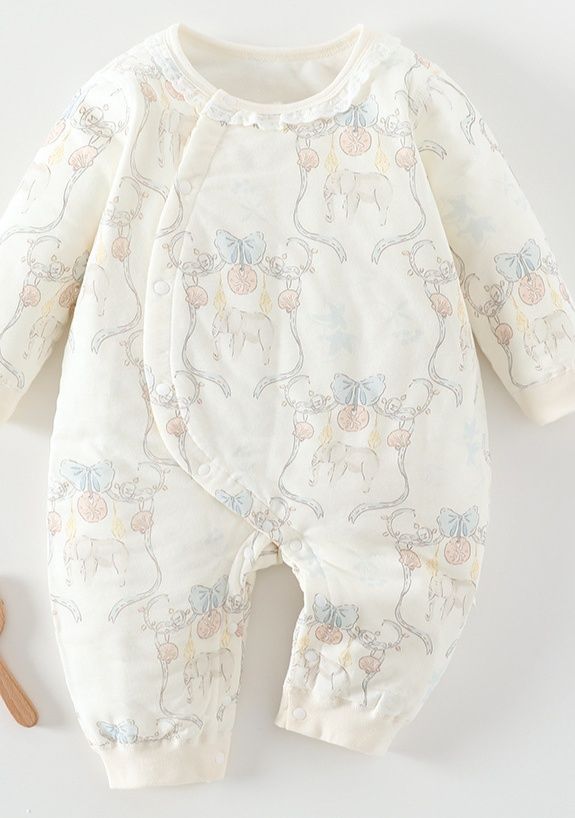 乳児の快適な眠りをサポートする愛らしいゾウさん柄のスリーパーです。