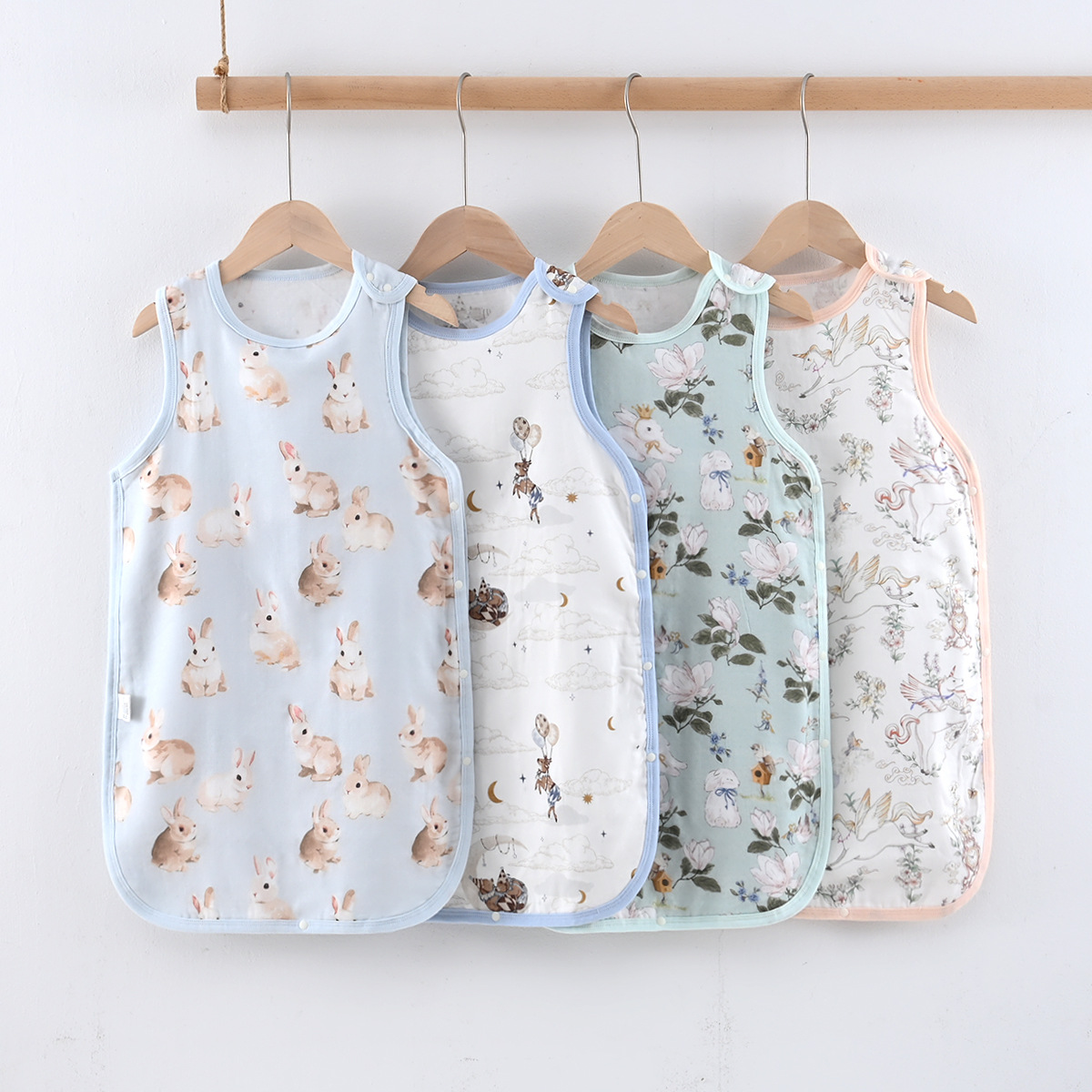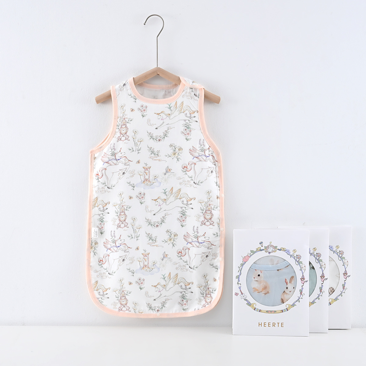 乳児の快適な眠りをサポートする袖なしタイプのスリーパーです。