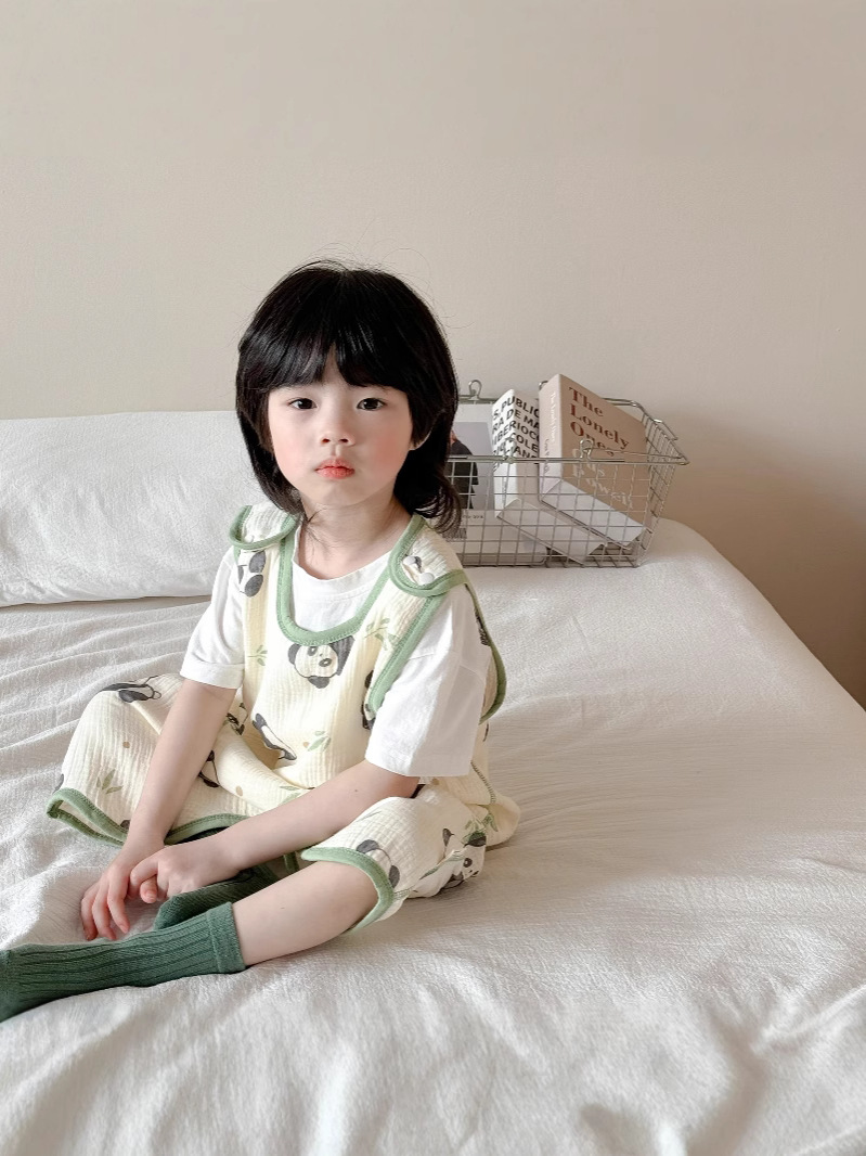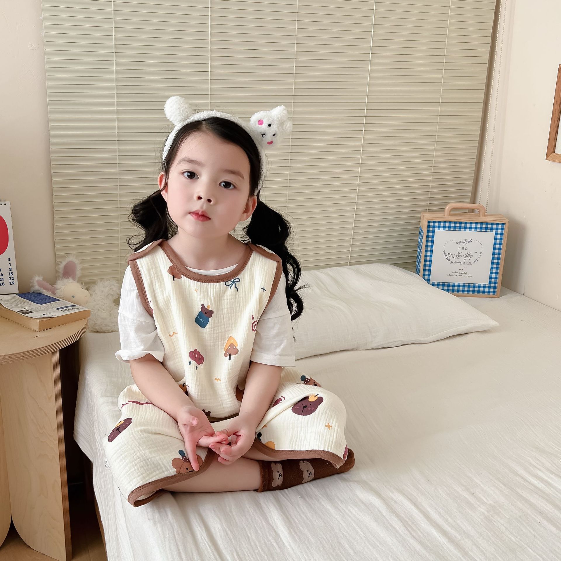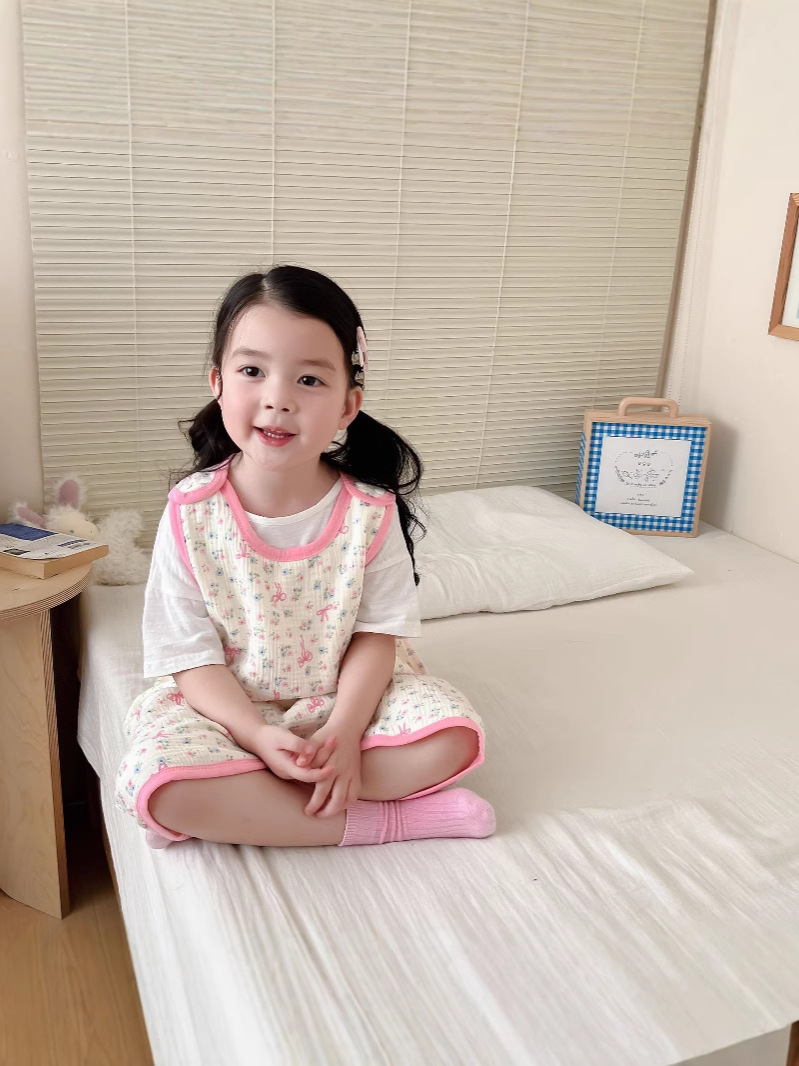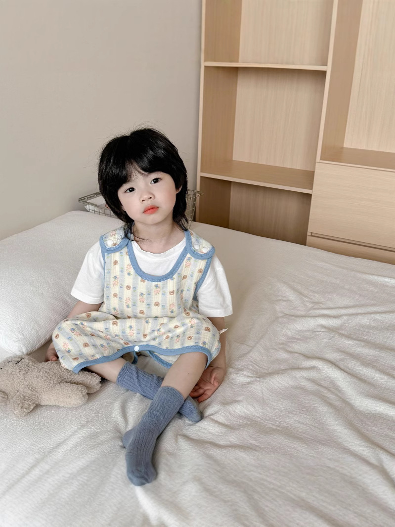 半袖のインナーとサロペットが一体になったようなデザインで、寝冷えからお子様を守ります。