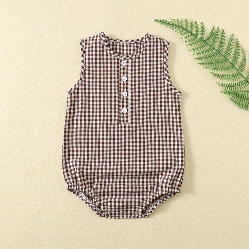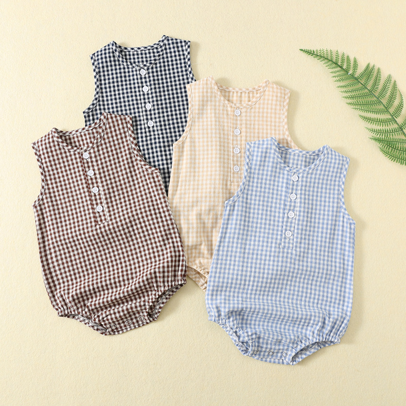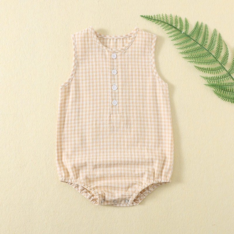 袖なしデザインで夏場も涼しく、前開きボタンでおむつ替えもスムーズに行えます。