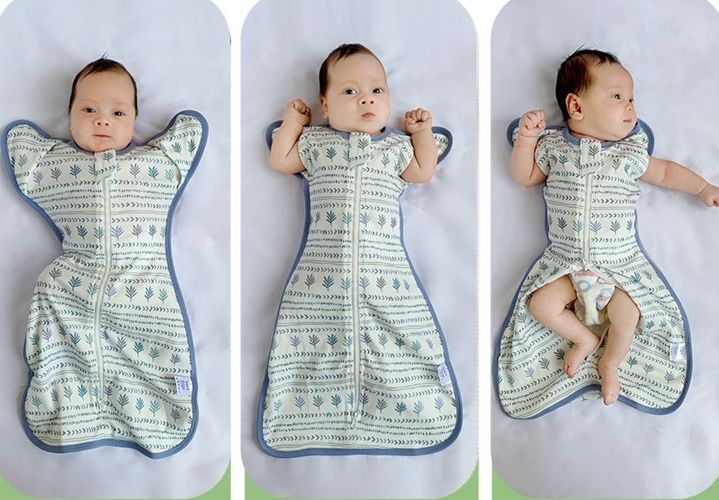 第1段階では全身を包み込んで安心感を与え、第2段階では腕を出して遊べるように、第3段階では足を自由に動かせる設計になっています。