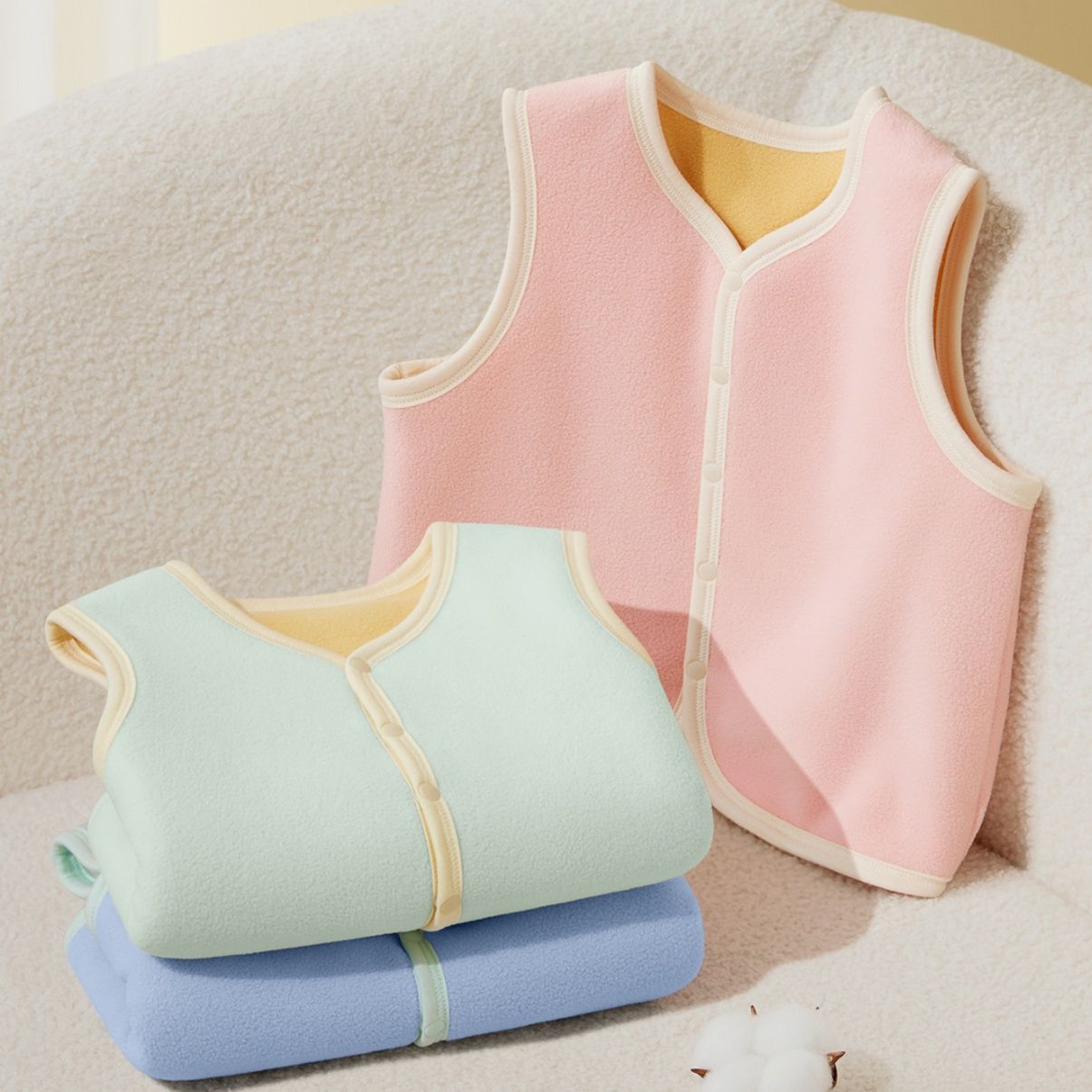 フリース生地で暖かさをしっかりキープしながらも軽量で動きやすく、お子様の睡眠時や室内着として最適です。