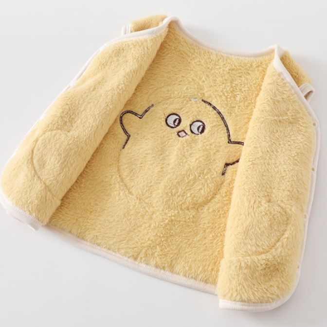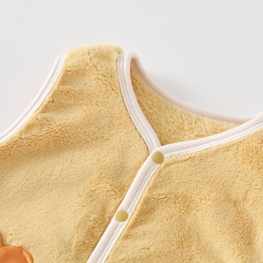 ふわふわの厚手素材で作られた袖なしタイプのスリーパーです。