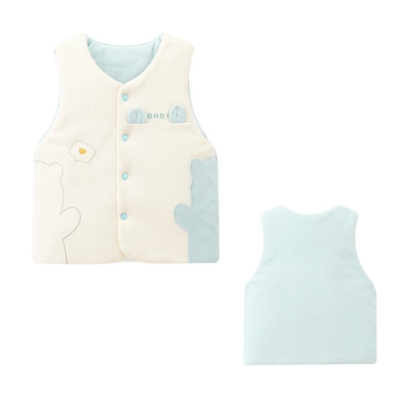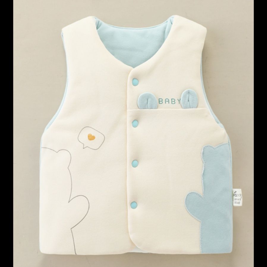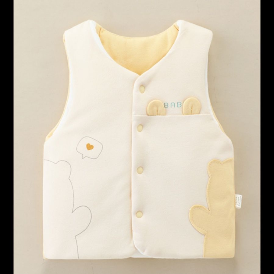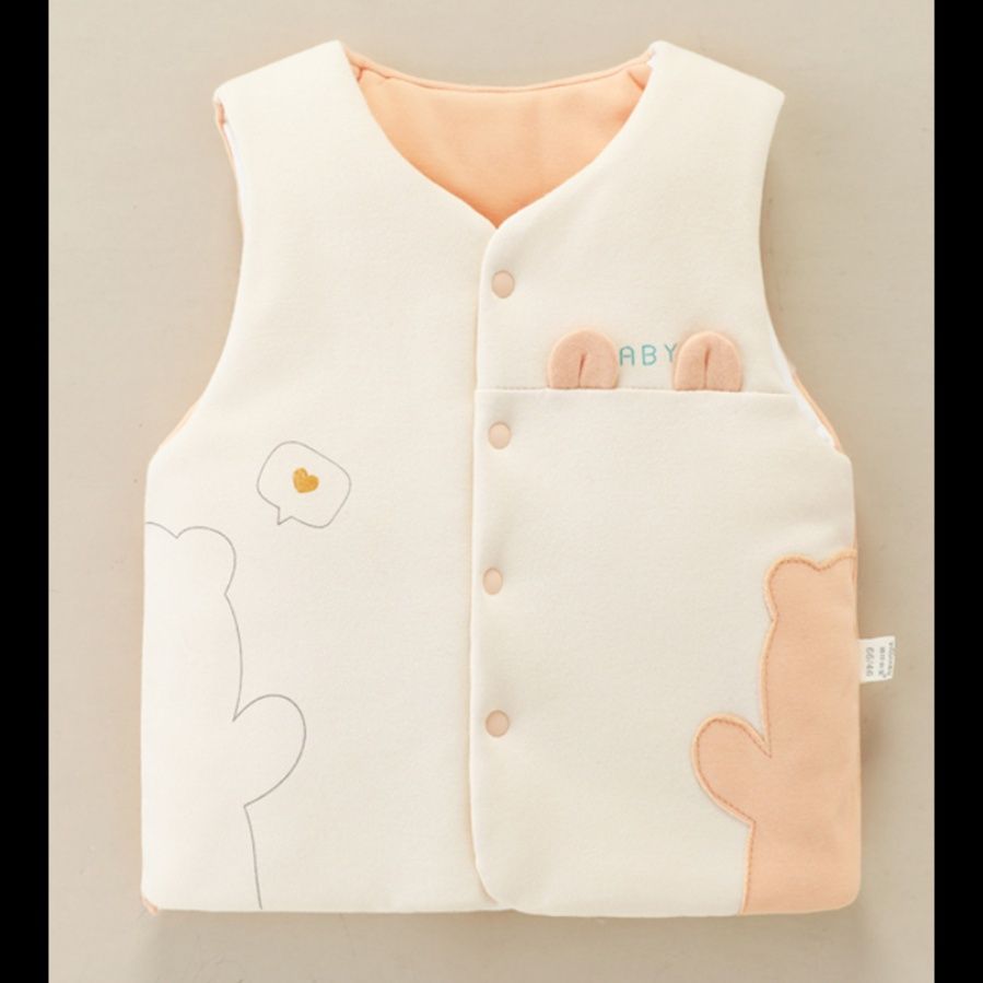 愛らしいくまのアップリケが特徴的な赤ちゃん用の厚手スリーパーです。