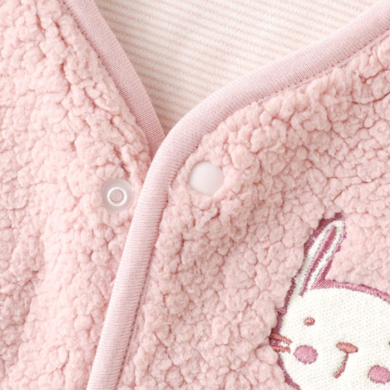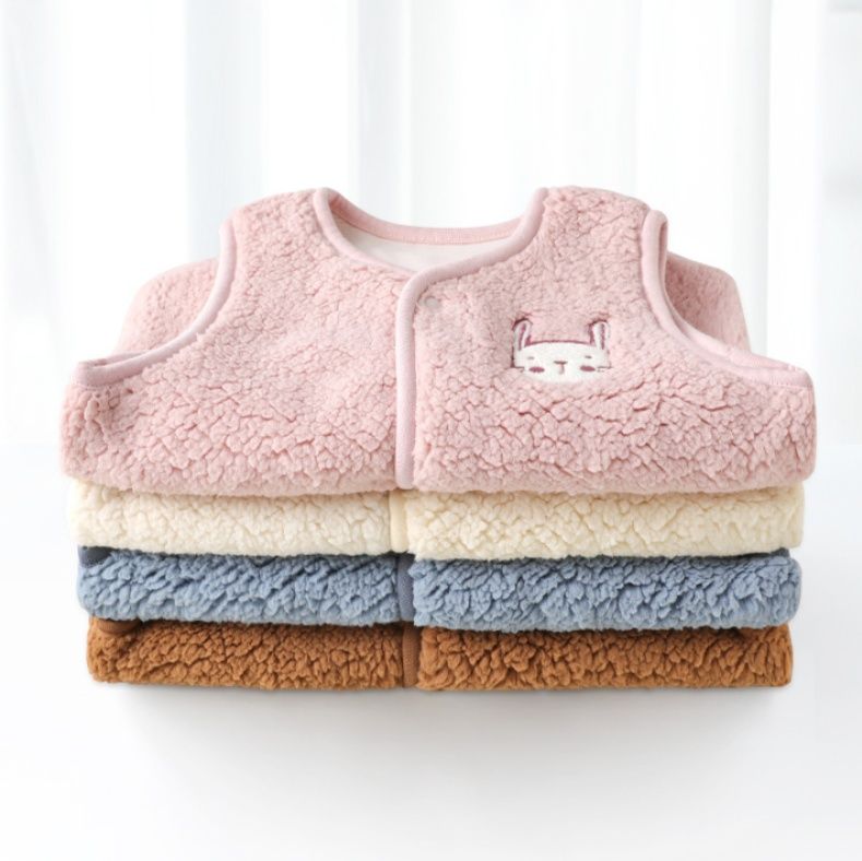 ふわふわのボア素材が特徴の可愛らしいベストタイプのスリーパーです。