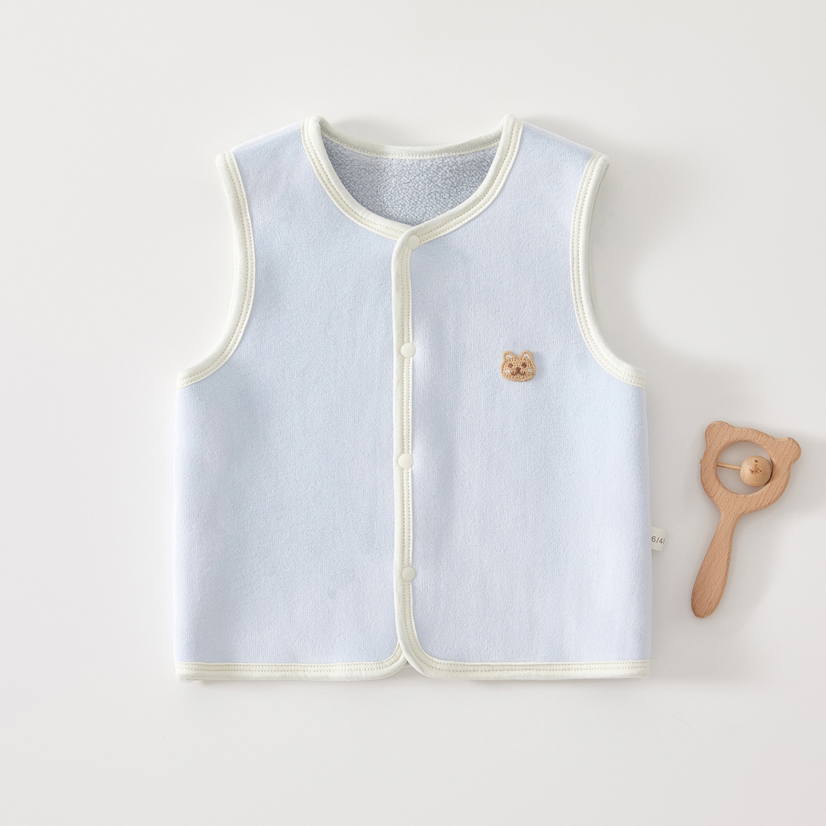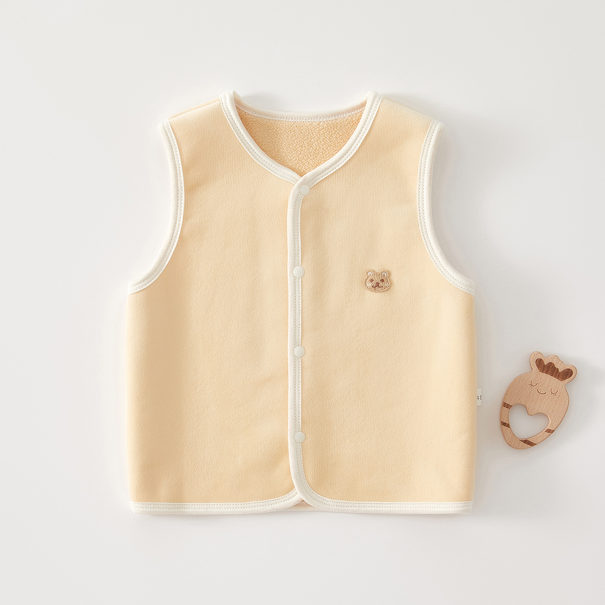 やわらかな素材で作られたベビー用スリーパーベストです。