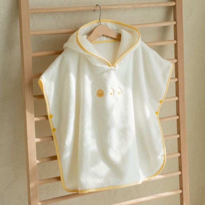 フード付きのポンチョ型デザインで着脱が簡単にでき、寝冷え対策にも最適です。