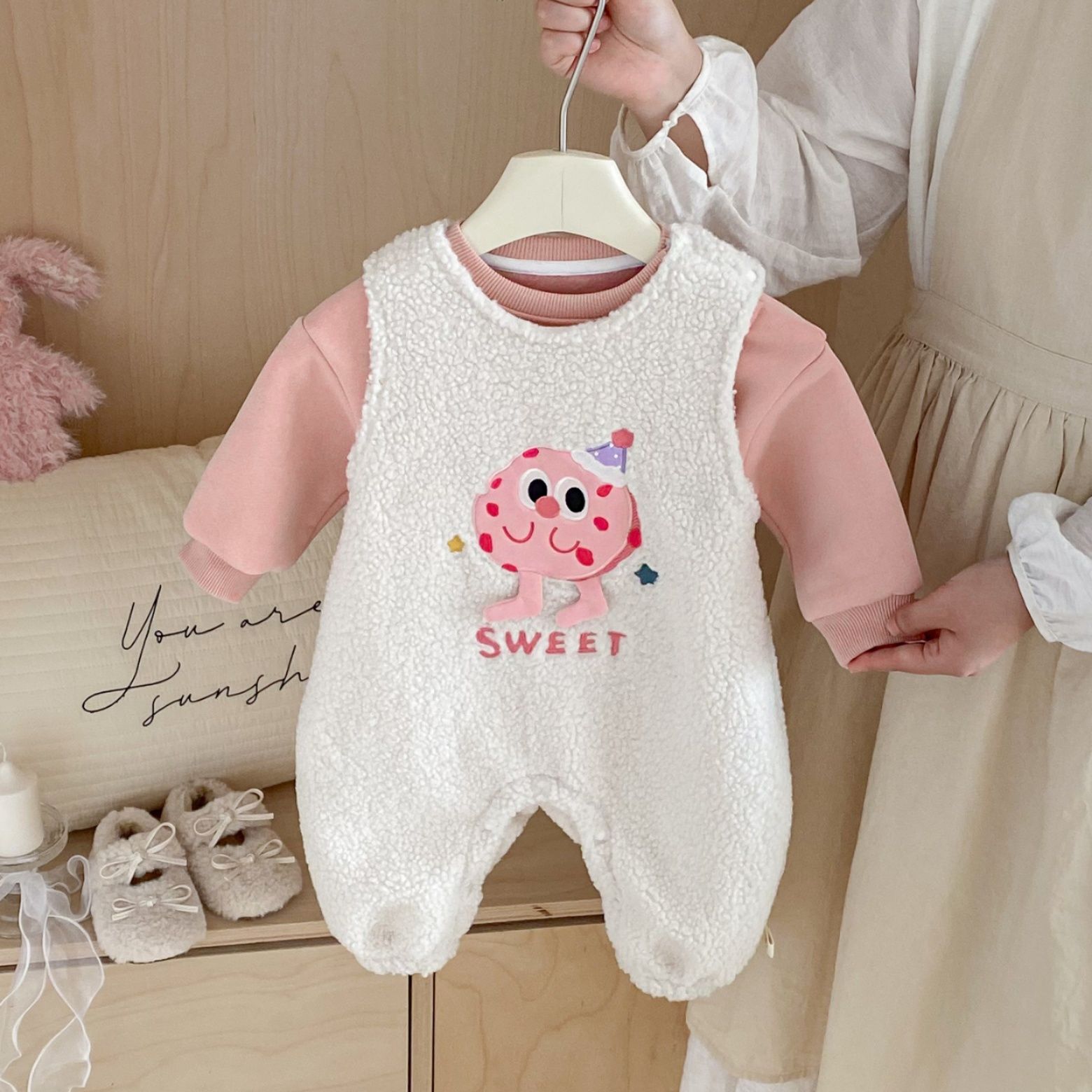 ふわふわのもこもこ素材が心地よい厚手のスリーパーです。