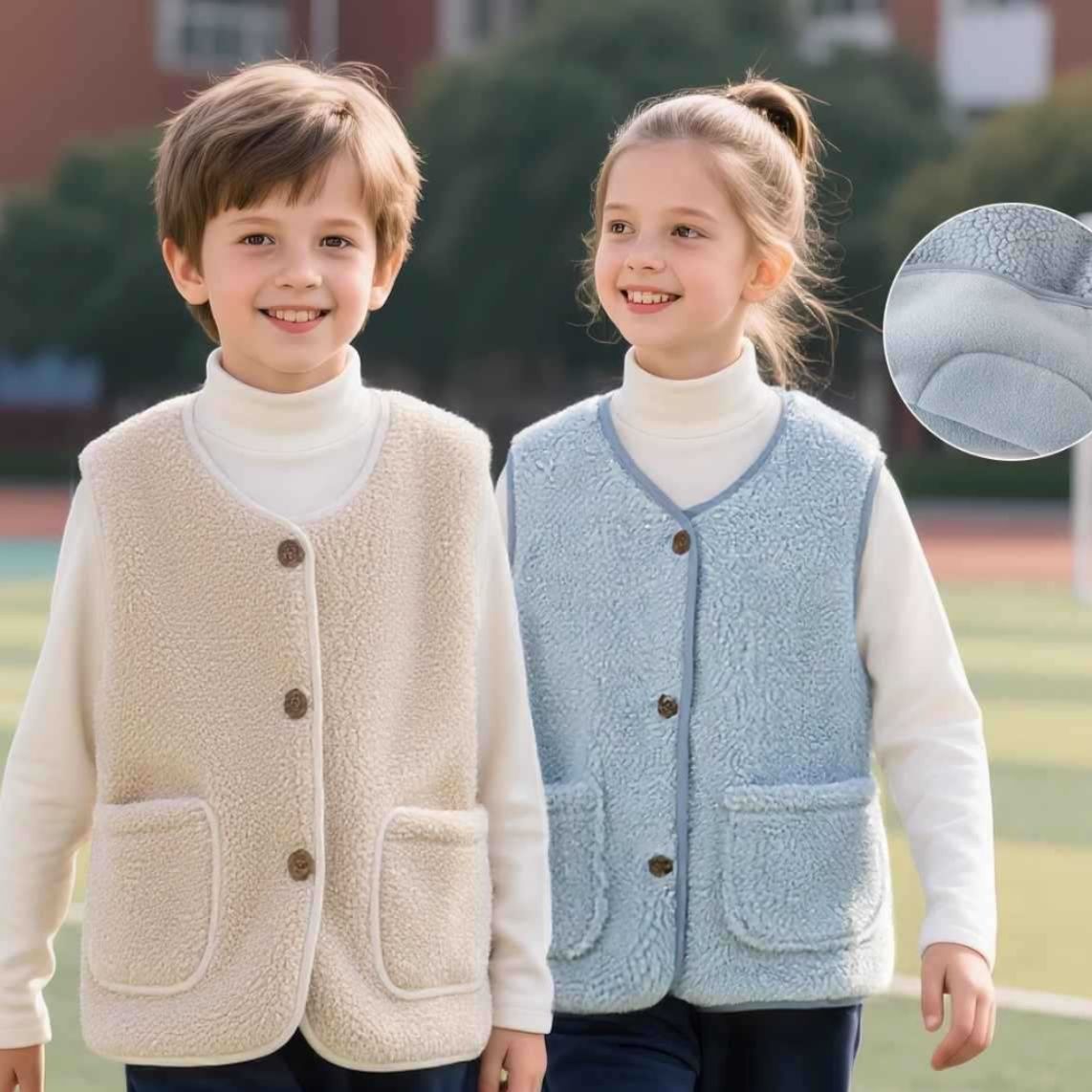 小学生の登下校や室内着に最適なスリーパーとしても使える便利なベストです。