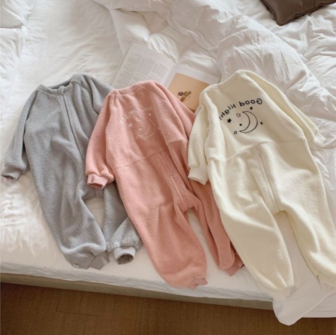 ふんわり柔らかなボア素材で仕上げた長袖タイプのスリーパーです。