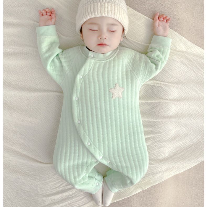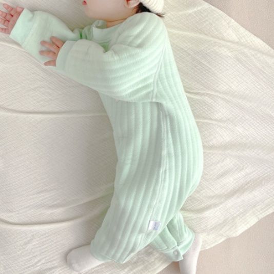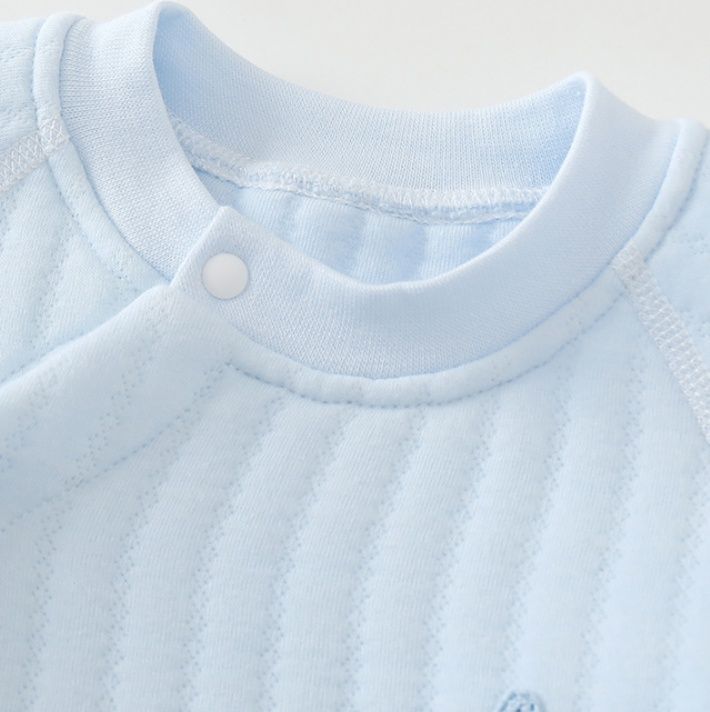 立体的なキルティング加工が空気層を作り、寒い季節でも赤ちゃんを優しく包み込みます。